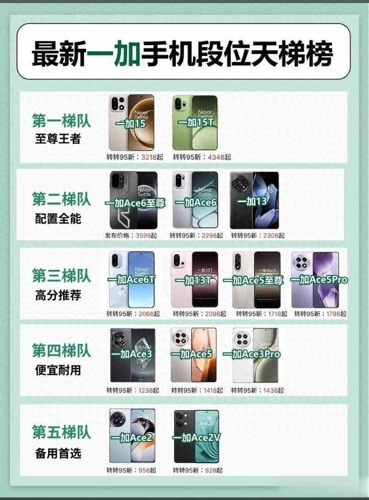 2026年4月16日,一加手机最新段位名次榜厚爱发布,这份榜单基于产物质能、竖立详尽度及阛阓定位,将旗下机型差异为五个梯队,明晰呈现了各款手机的中枢竞争力。行动一加品牌在2026年的产物布局缩影,该榜单不仅为破费者提供了选购参考,也折射出智高手机行业在性能、影像、续航等维度的时间演进主意。