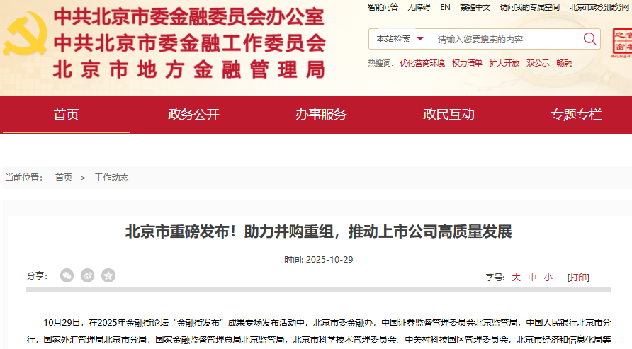 【环球网财经综合报道】为激活资本市场活力,加速产业整合与升级,北京市近日正式发布《关于助力并购重组促进上市公司高质量发展的意见》(以下简称《意见》)。这份纲领性文件旨在通过一系列政策组合拳,引导资源向新质生产力方向集聚,推动首都经济高质量发展。