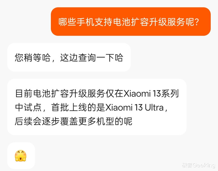 极客君关系小米官方客服,对方修起称咫尺电板扩容升级做事仅相沿小米 13 系列三款机型,最大相沿 541mAh 容量的扩容,具体扩容升级的机型和对应电板变化如下: