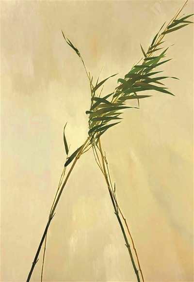 杨勋的油画《虹竹》以浓烈而层次丰富的色彩描绘竹的生长状态,画面中竹的形象被拉伸、重叠,形成持续向上的视觉节奏,更多指向一种生长中的状态。郭子龙以不锈钢材质塑造竹叶形态,金属表面在光线照射下产生细微变化,竹叶在坚硬材质中呈现出轻盈而流动的视觉效果……展览让观众发现,原来有这么多以竹为切入的、令人耳目一新的作品。
