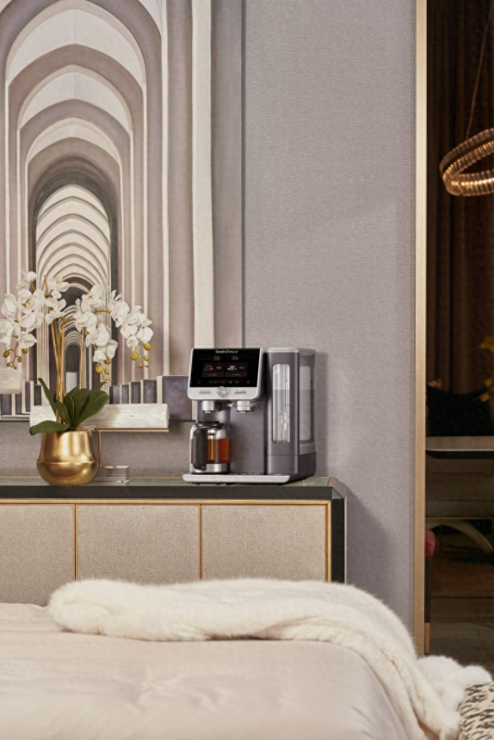 卧室是什么地点?是卸下所有这个词身份、只属于我方的边缘。睡前翻几页书,追两集剧,这时辰念念喝点什么,念头一齐来,就被“还得下床,还得烧水”劝退。床头那杯隔夜水早凉透了。卧室缺的从来不是喝茶的心,是让茶情景走进卧室的事理。
