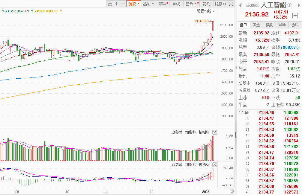 【环球网财经综合报道】2026年1月12日,人工智能(AI)赛道表现很亮眼。AI营销、Sora概念、智谱AI、多模态AI及AIGC概念等细分领域全线上涨,带动超过20只股票取得“20cm”涨停。与此同时,零售业在AI技术的赋能下正迎来深刻变化,随着谷歌与沃尔玛的强强联手,AI购物概念股瞬间成为市场焦点,机构资金更是扎堆盯上了一批具备高增长潜力标的。